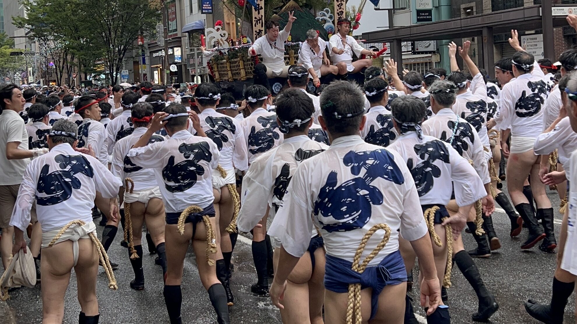 This might look like a strange sight, it kind of is, but these men are practicing for one of the most famous festivals of Fukuoka (Hakata Gion Yamakasa).